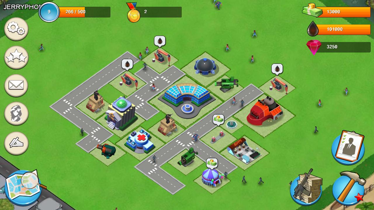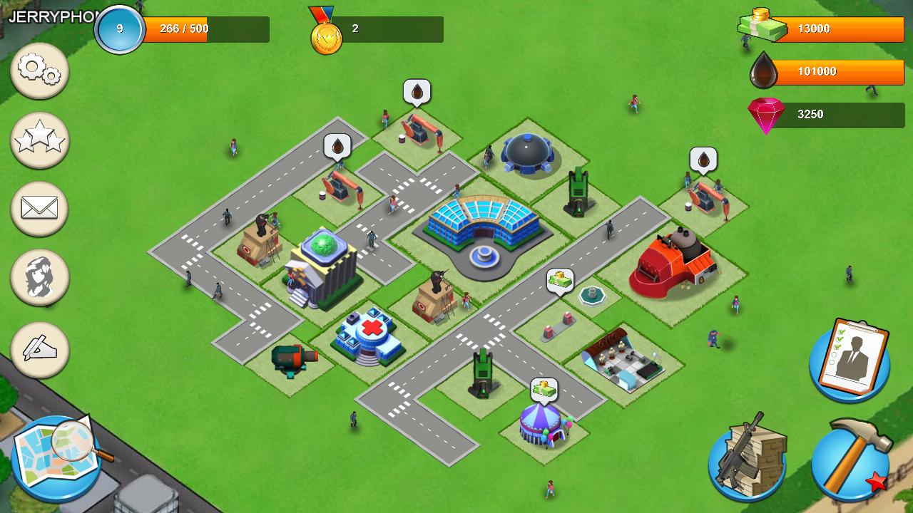 Vous devez partir d'un quartier abandonné et construire des bâtiments et des défenses, embaucher des soldats et se battre avec les gangs.